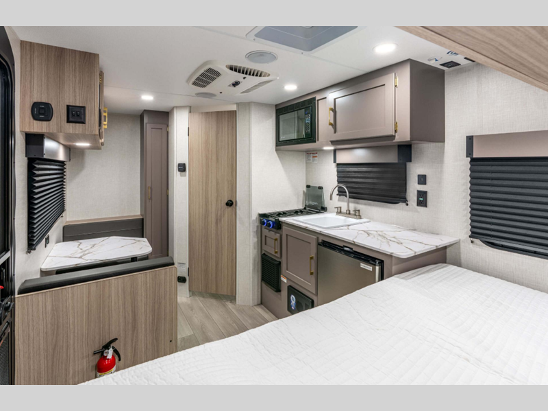 Sleeps 5 Slides 1 Length 21 ft 10 in Ext Width 7 ft 6 in Ext Height 9 ft 4 in Int Height 6 ft 6 in Interior Color Nomad, Mushroom Grey Hitch Weight 440 lbs GVWR 4800 lbs Dry Weight 3740 lbs Cargo Capacity 1060 lbs Fresh Water Capacity 20 gals Grey Water Capacity 26 gals Black Water Capacity 26 gals Tire Size 15" Furnace BTU 20000 btu Number Of Bunks 2 Available Beds Queen Refrigerator Type 12V Refrigerator Size 8 cu ft Cooktop Burners 2 Number of Awnings 1 Axle Weight 3300 lbs LP Tank Capacity 20 lbs Water Heater Type Tankless AC BTU 15000 btu Awning Info 14' Power Axle Count 1 Number of LP Tanks 1 Shower Type Neo-Angled Similar Floorplans