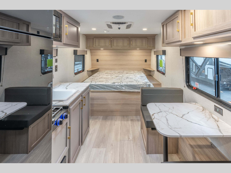 Sleeps 7 Slides 1 Length 22 ft 10 in Ext Width 7 ft 6 in Ext Height 9 ft 4 in Int Height 6 ft 6 in Interior Color Nomad, Mushroom Grey Hitch Weight 530 lbs GVWR 4800 lbs Dry Weight 3810 lbs Cargo Capacity 990 lbs Fresh Water Capacity 20 gals Grey Water Capacity 26 gals Black Water Capacity 26 gals Tire Size 15" Furnace BTU 20000 btu Number Of Bunks 2 Available Beds Queen Refrigerator Type 12V Refrigerator Size 8 cu ft Cooktop Burners 2 Number of Awnings 1 Axle Weight 3280 lbs LP Tank Capacity 20 lbs Water Heater Type Tankless AC BTU 13500 btu Awning Info 15' Power Axle Count 1 Number of LP Tanks 1 Shower Type Neo-Angled Similar Floorplans